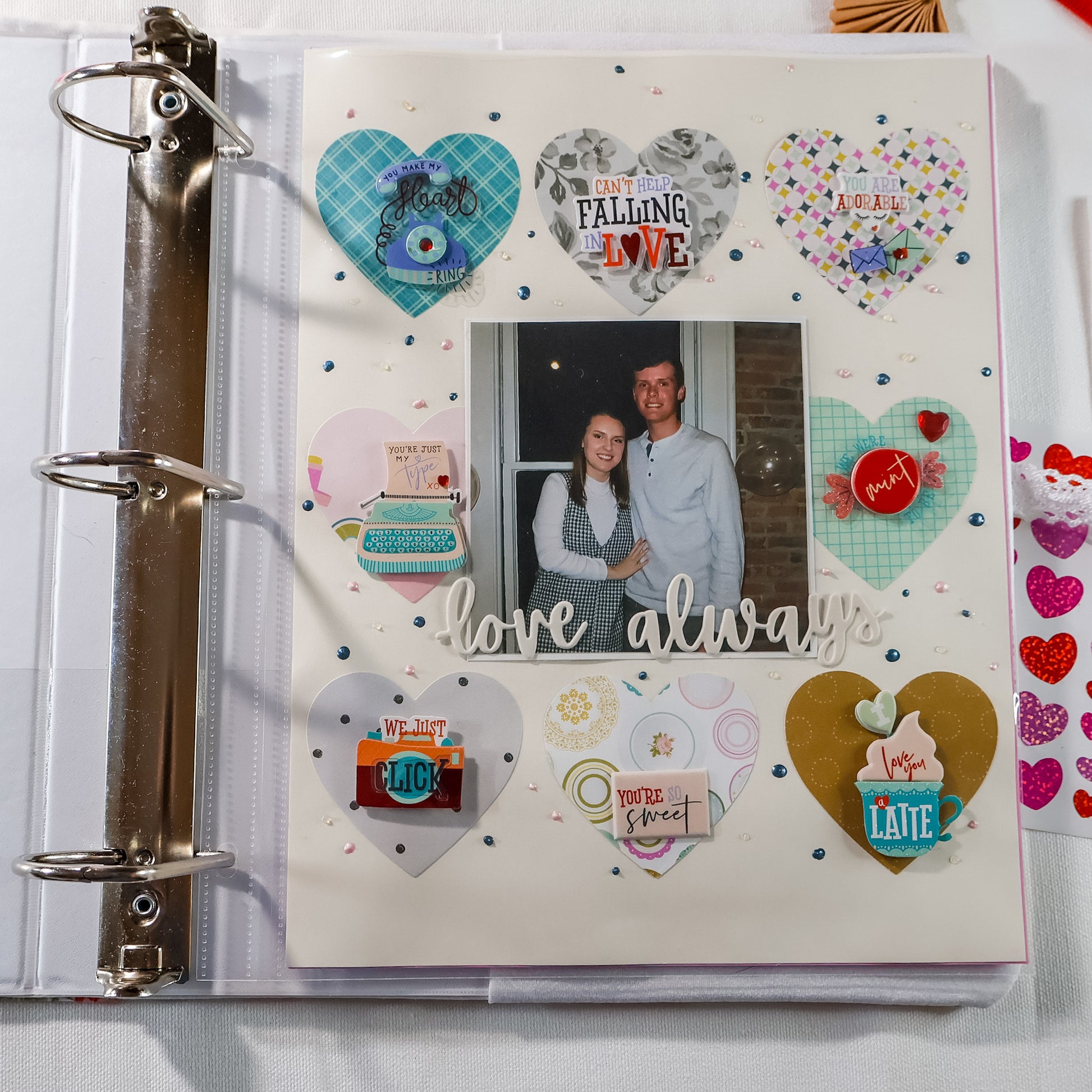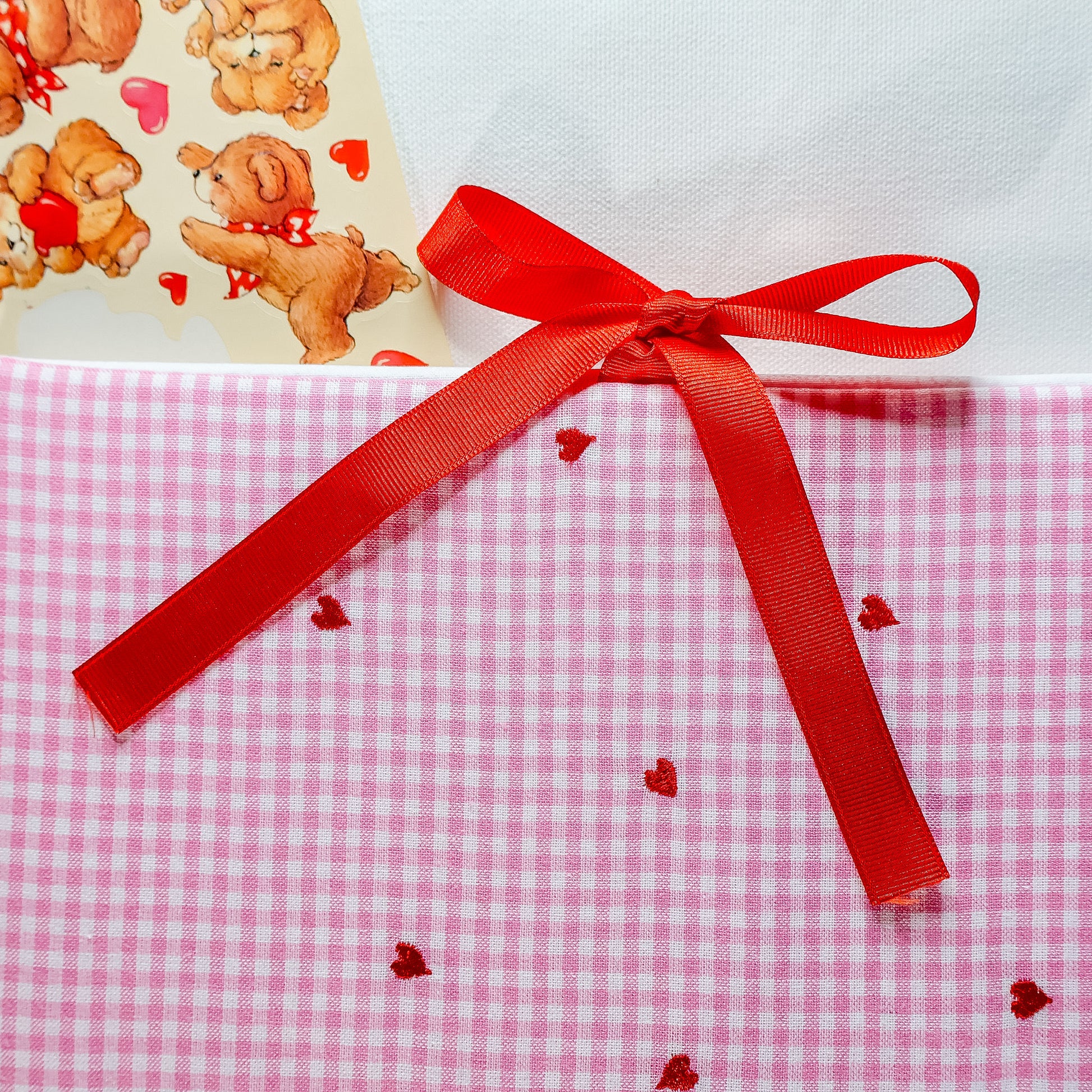 Pink Gingham Hearts Handmade Scrapbook Album | Customizable scrapbooking with Embroidery, Valentine's Day Scrapbook, Anniversary Gift