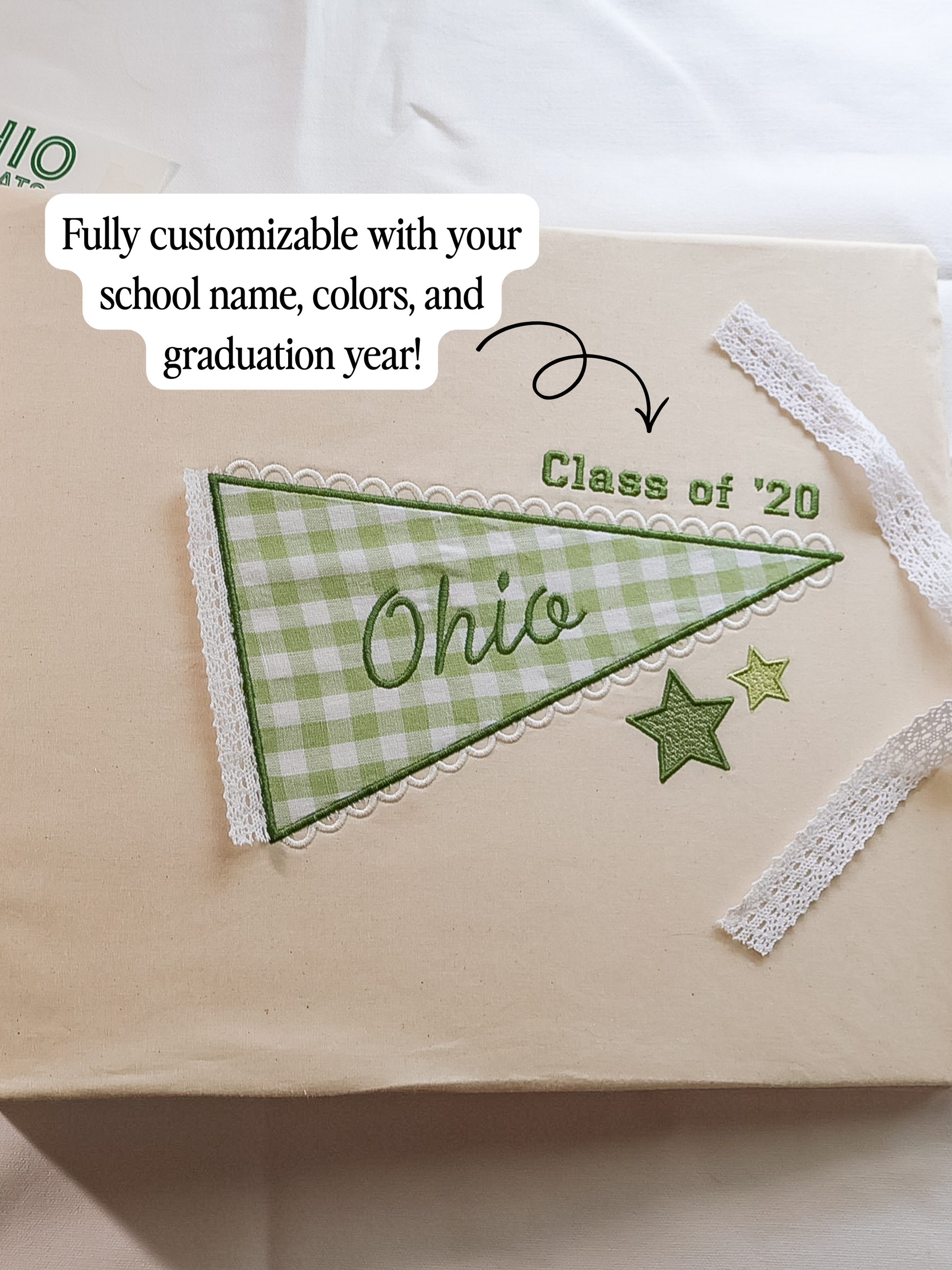 - Please enter the name of your college into the notes section at checkout, and also include school colors and graduation year. (please note: large school names may need to be abbreviated to two/ three letters. EX: Ohio University or OU)